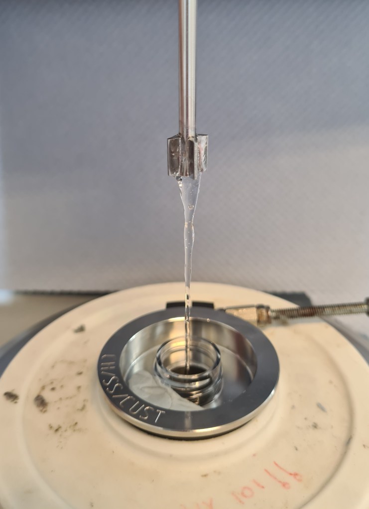 Stringy things…. Photograph taken by Lisa after a rheology measurement on a solution of 2NapFF at 30 mg/mL. Related