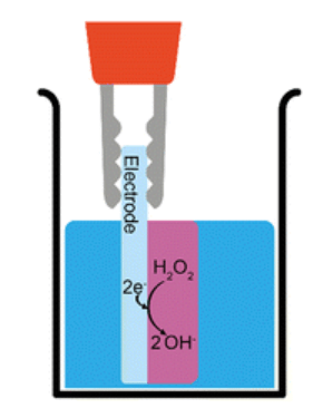 If a molecule can gel at a high pH (e.g. Fmoc-3) then gelation can be induced by the electrochemical reduction of hydrogen peroxide. This reaction generates hydroxide ions at the electrode-solution interface leading to a localised increase in pH and therefore gel growth. To form the hydrogel, the gelator molecules self-assemble in water to form fibrous structures that entangle when the pH of the solution is raised above the pKa .