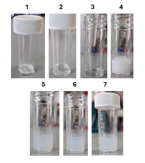 - Trigger gelation by adding the water aliquot to the sample via pipette. This should be done as a single aliquot added rapidly. To ensure consistent samples, the water aliquot should be dispensed firmly via pipette from slightly above the DMSO gelator stock, to encourage effective mixing and thus a homogenous sample.